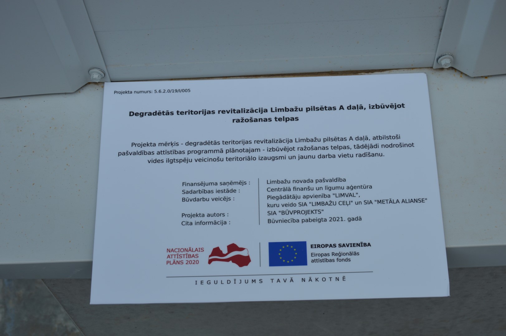 Limbažu novada pašvaldība šo projektu īstenoja “Degradētās teritorijas revitalizācija Limbažu pilsētas A daļā, izbūvējot ražošanas telpas” ar Eiropas Reģionālās attīstības fonda (ERAF) līdzfinansējumu specifiskā atbalsta mērķa 5.6.2. pasākumā "Teritoriju revitalizācija, reģenerējot degradētās teritorijas atbilstoši pašvaldību integrētajām attīstības programmām".