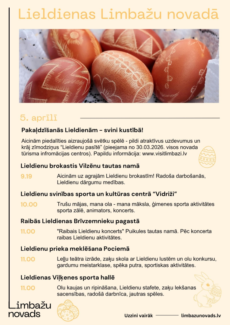 - LIMBAŽU NOVADS – plkst.10.00 Pakaļdzīšanās Lieldienām 2026